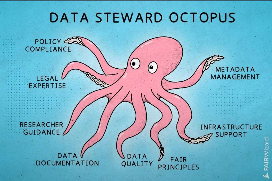 Representação visual do perfil de competências de um Data Steward produzida pela FAIR Wizard (https://fair-wizard.com/blog/who-is-a-data-steward)